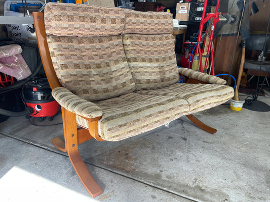 Unique vintage three seater low-lined Danish sofa *Restored Wool & Oak