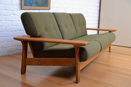 Unique vintage three seater low-lined Danish sofa *Restored Wool & Oak