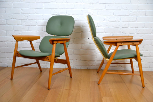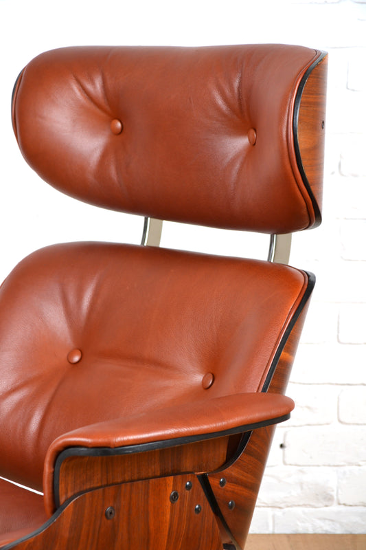 Mid century leather lounge armchair / footstool Plycraft George Mulhauser / Eames - Restored