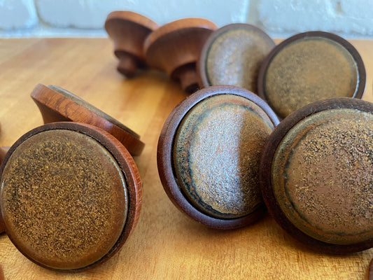 Mid century Vintage Teak glazed ceramic furniture/ door handles (rare European old parts)