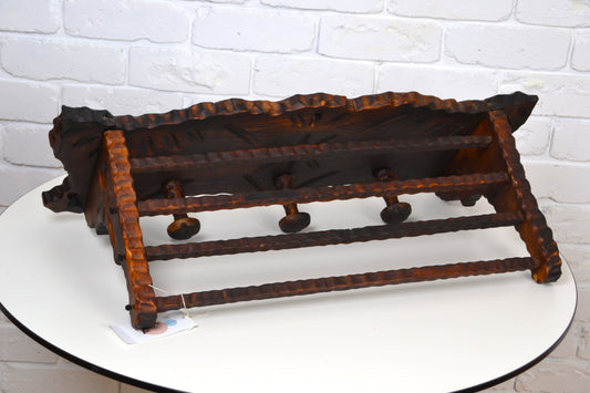Vintage 1970s Brutalist style timber wall coat / hat rack