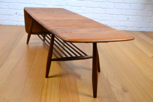 Rare Mid century drop leaf extension coffee table by Ercol - British mcm restored Elm / Beech